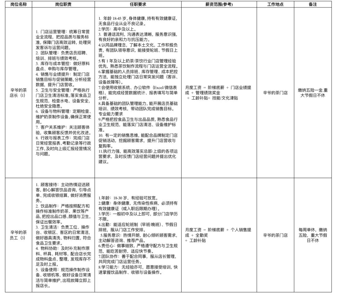 铅山县辛爷的茶招聘公告